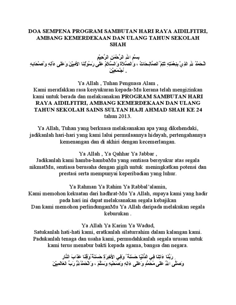 Doa Sempena Program Sambutan Hari Raya Aidilfitri Pdf